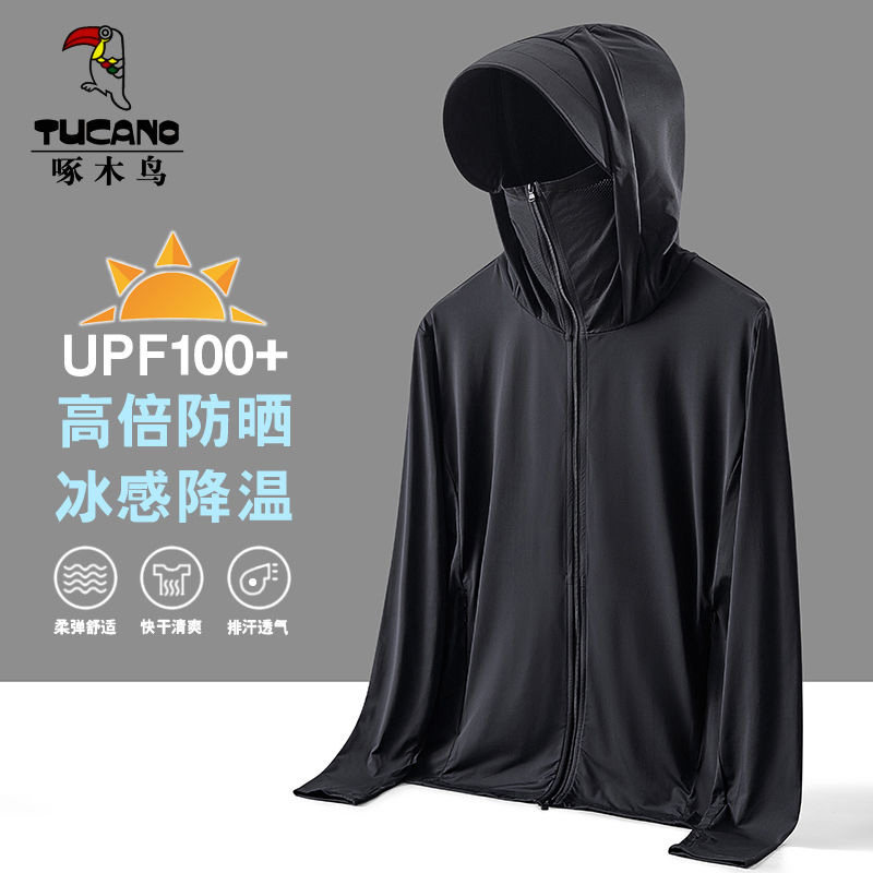 啄木鸟UPF50+防晒衣女男夏季防紫外线透气冰丝户外速干防晒薄款