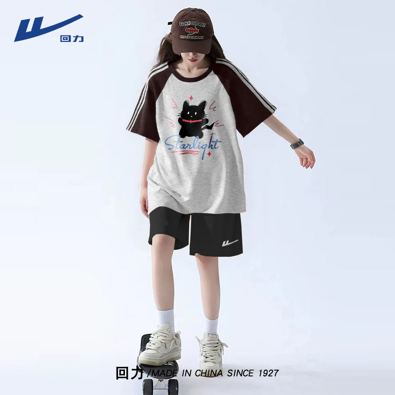 回力运动套装女2026新款夏季大码休闲女士中考体育跑步羽毛球服Y