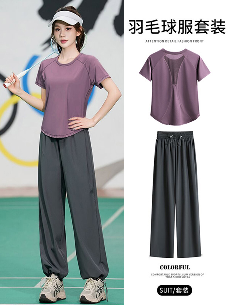 胖mm大码羽毛球服运动套装女2025新款宽松显瘦网球上衣短袖晨跑服