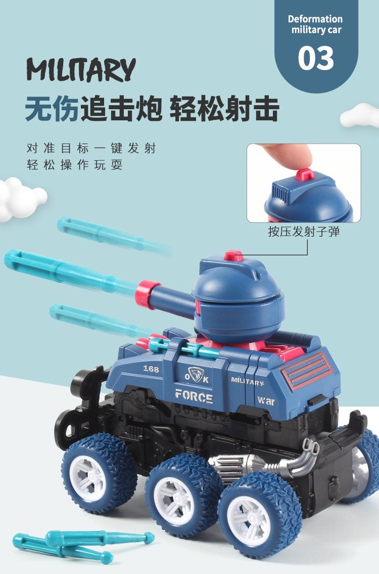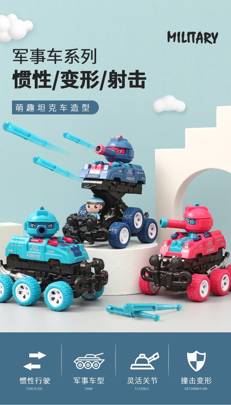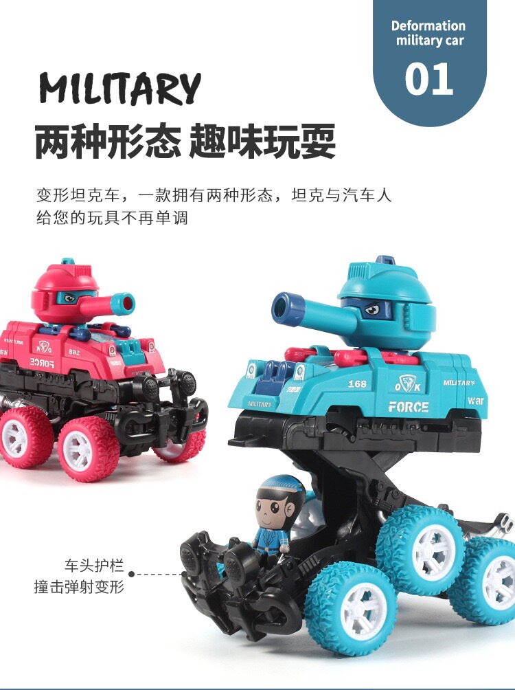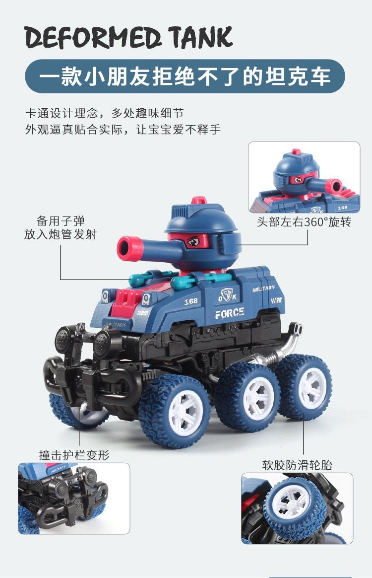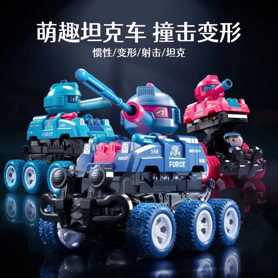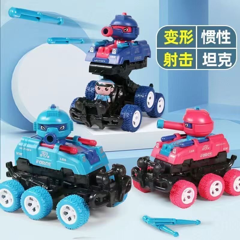 惯性越野车碰撞变形机器人可发射炮弹坦克玩具车儿童战车模型礼物