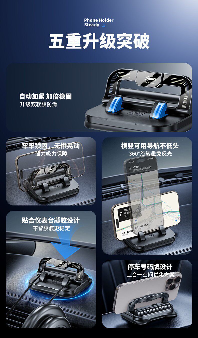 多功能新款车载手机支架停车号码牌汽车中控仪表台临时导航专用